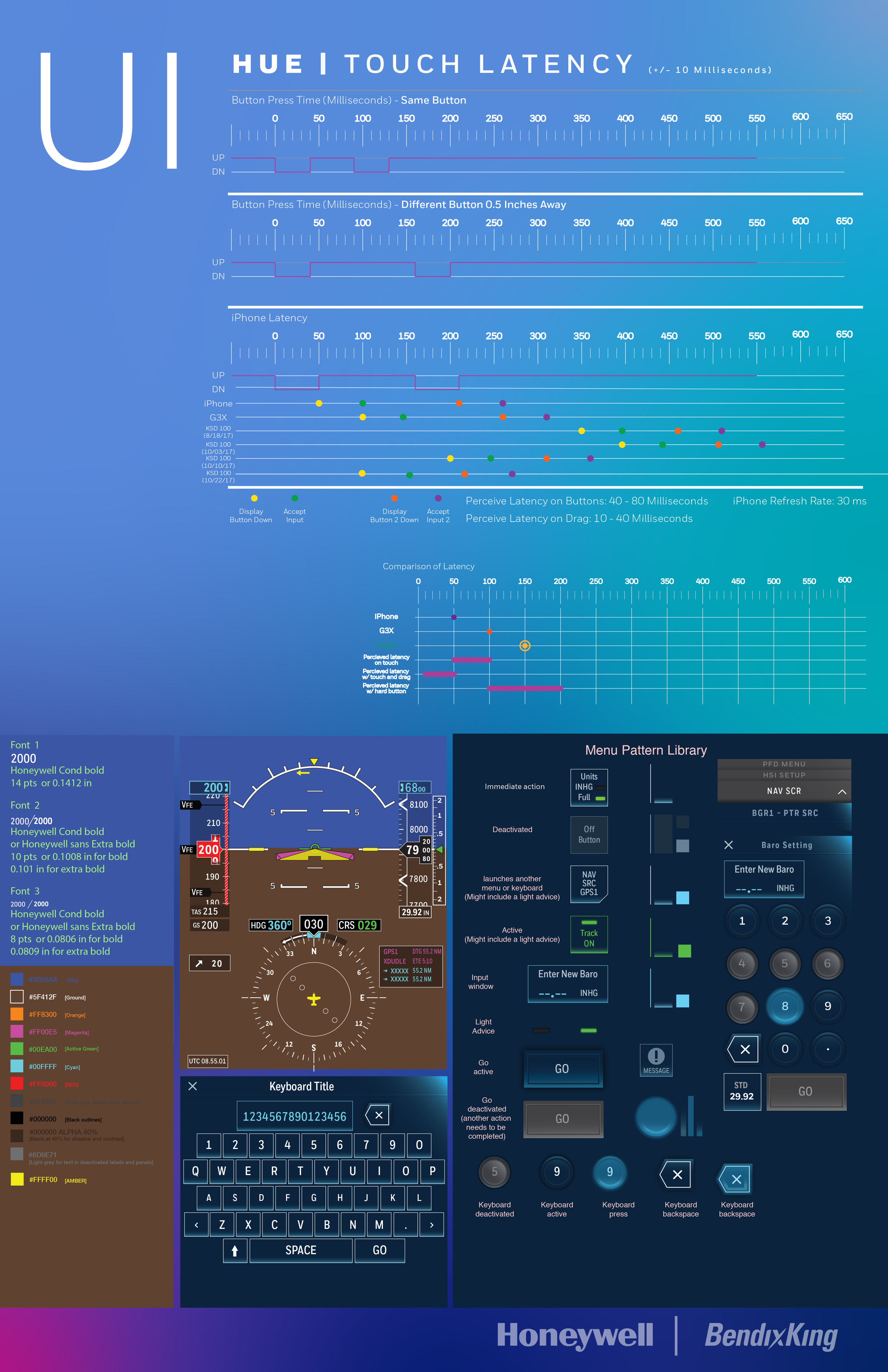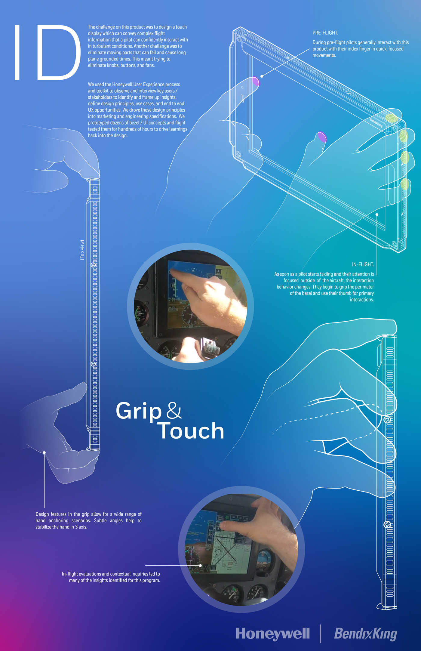Design research has revealed that General Aviation pilots suffer high cognitive workload and lower situational awareness while operating aircraft with analog flight instruments. The AeroVue Touch Smart Display Integrated Flight Deck improves safety by providing pilot’s with advanced features and an innovative HMI for better usability. The UX opportunity was to deliver a superior E2E HW & SW User Experience that delivers exceptional value to end customers while delivering excellent business results for Bendix King. Winner, 2018 Good Design Award.